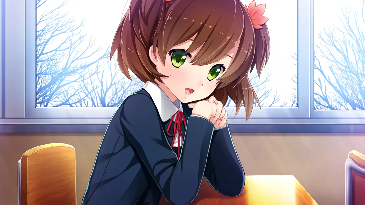 A classmate sitting next to the protagonist. Momiji is very interested in theater drama, after school she reads her favorite books aloud like it was script to practice.
